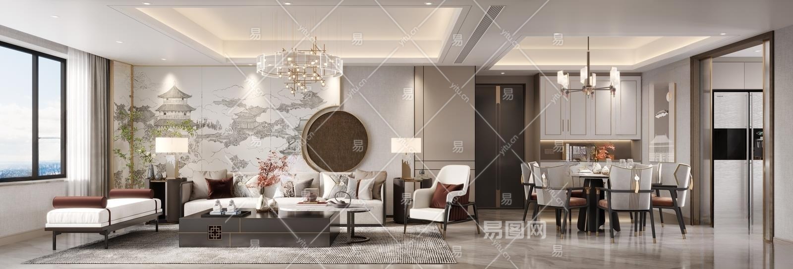 新中式客餐厅3D模型下载