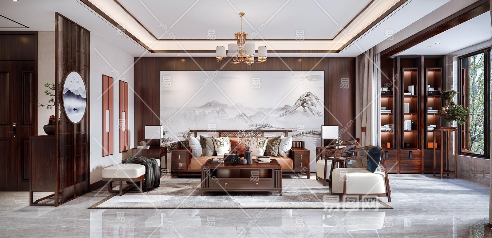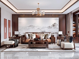 新中式客餐厅3D模型下载