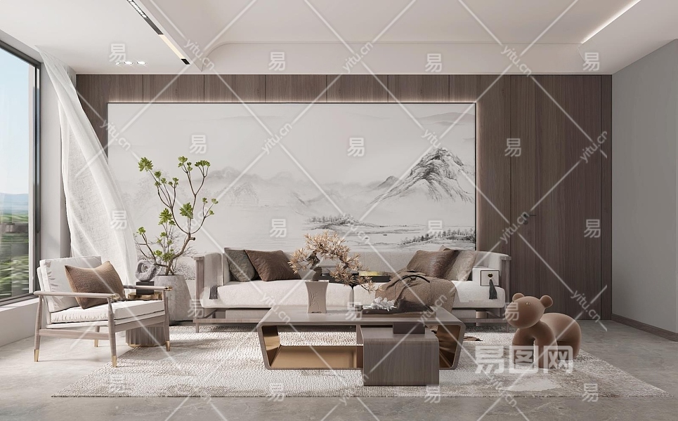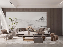 新中式客餐厅3D模型下载