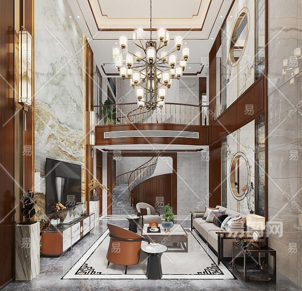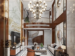 新中式别墅客餐厅3D模型下载