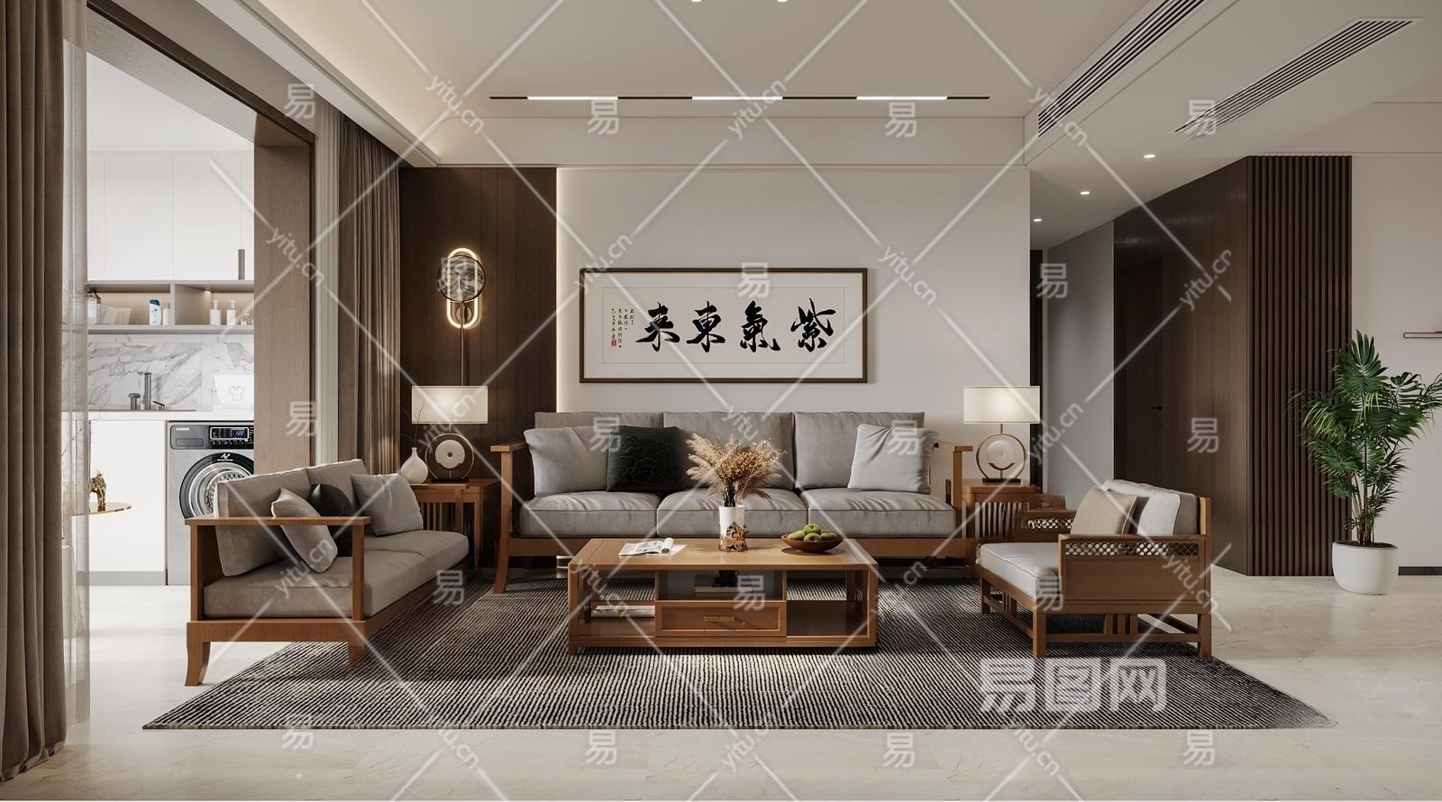 新中式客餐厅3D模型下载