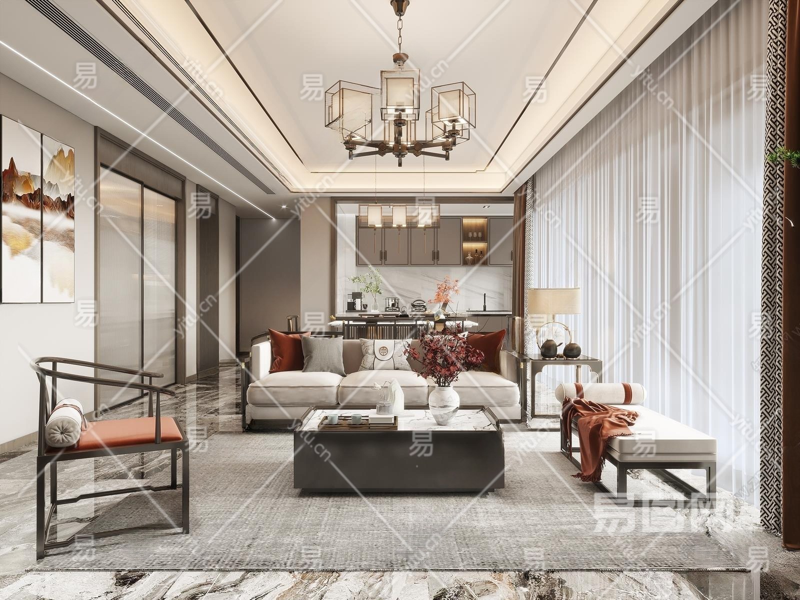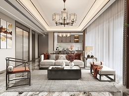 新中式客餐厅3D模型下载