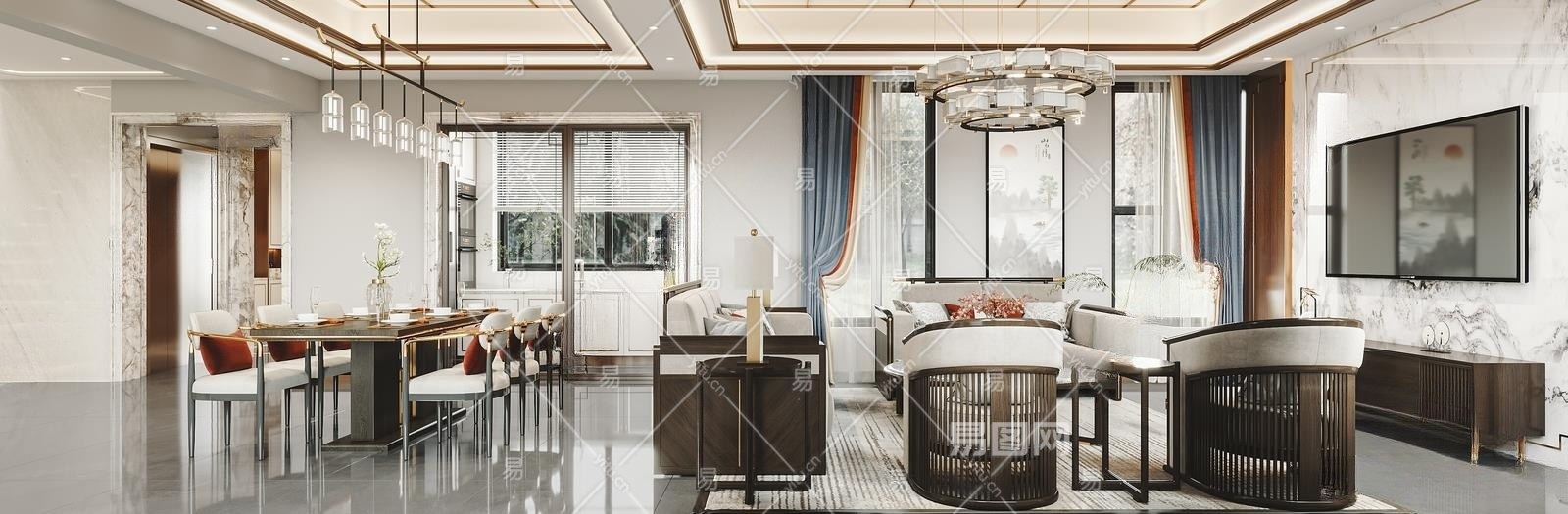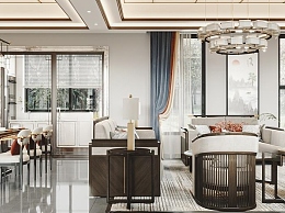 新中式别墅客餐厅3D模型下载
