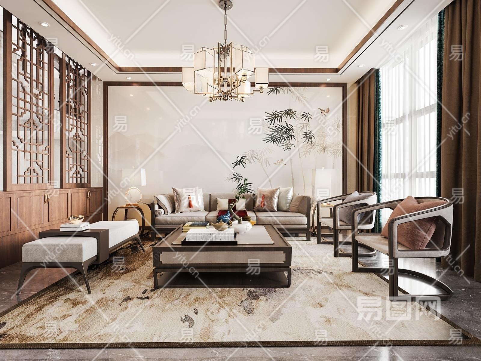 材质CR材质 贴图有贴图 灯光CR灯光 风格新中式