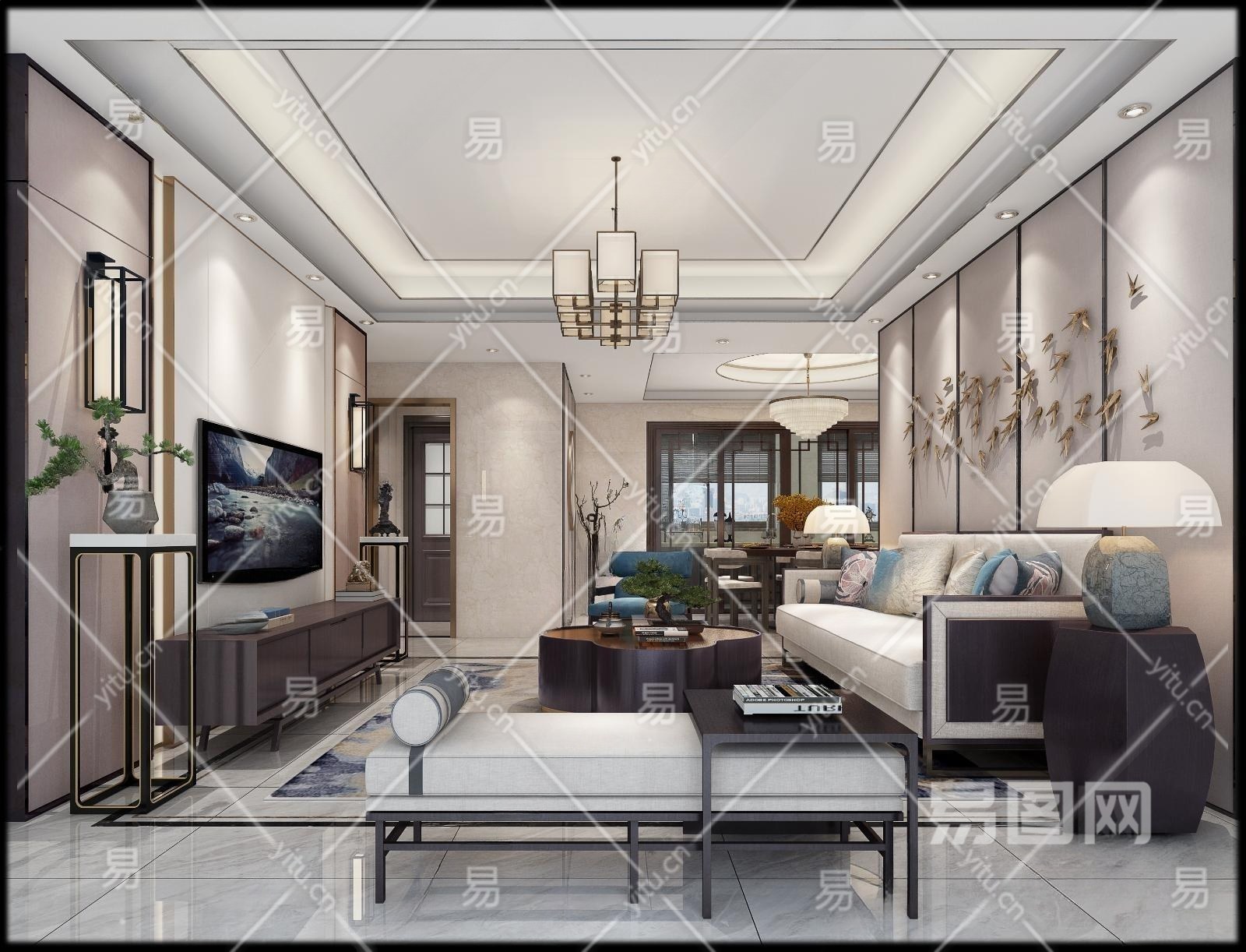 新中式客餐厅3D模型下载