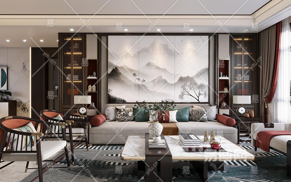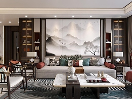 新中式客餐厅3D模型下载