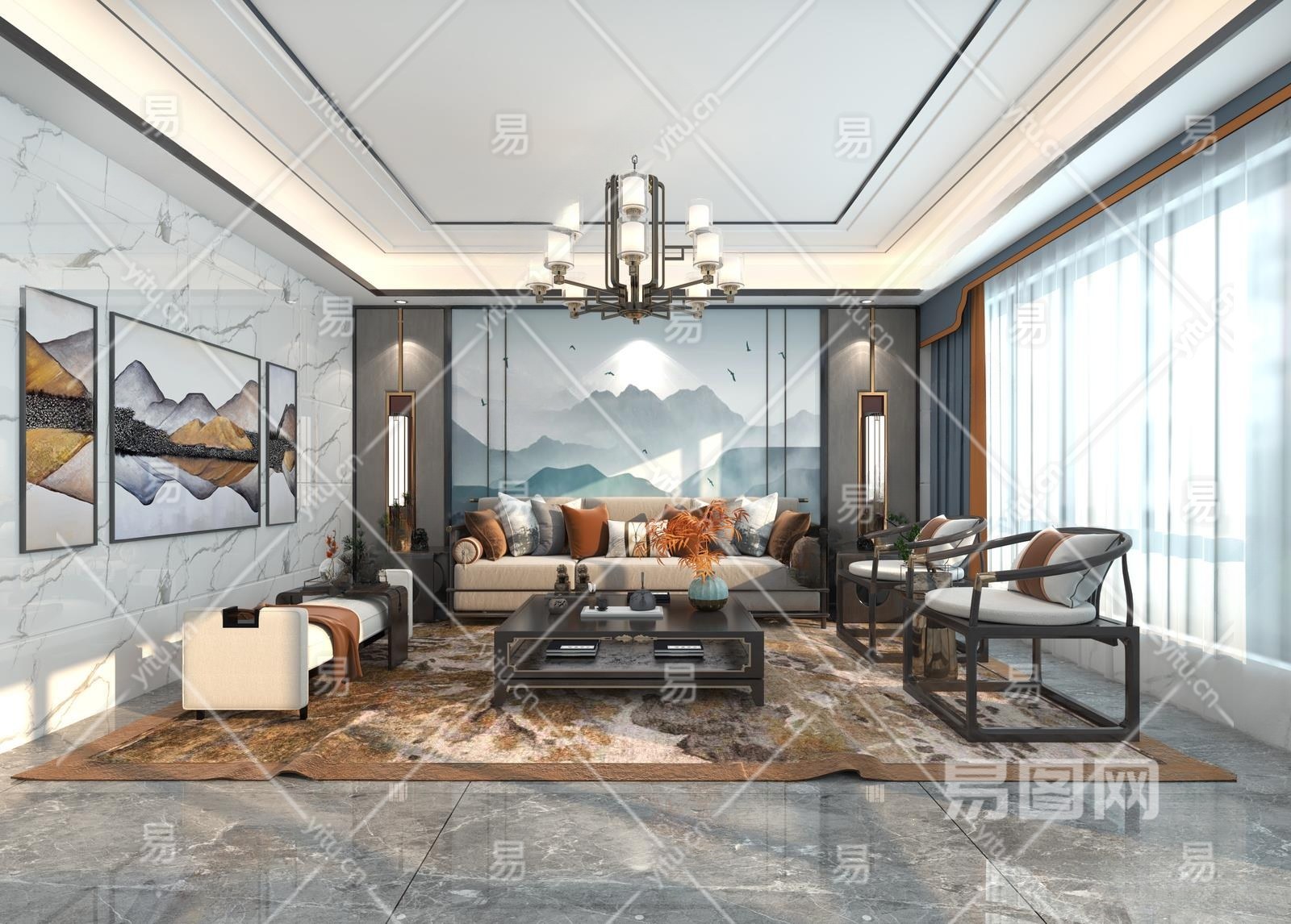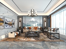 新中式客餐厅3D模型下载