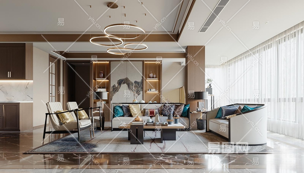 新中式客餐厅3D模型下载