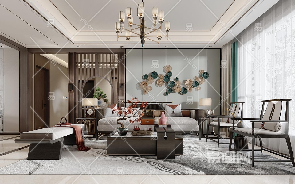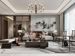 新中式客餐厅3D模型下载