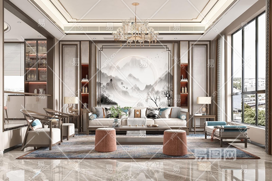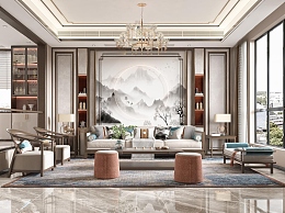 新中式客餐厅3D模型下载