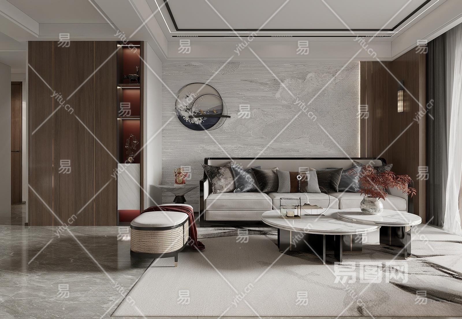 新中式客餐厅3D模型下载