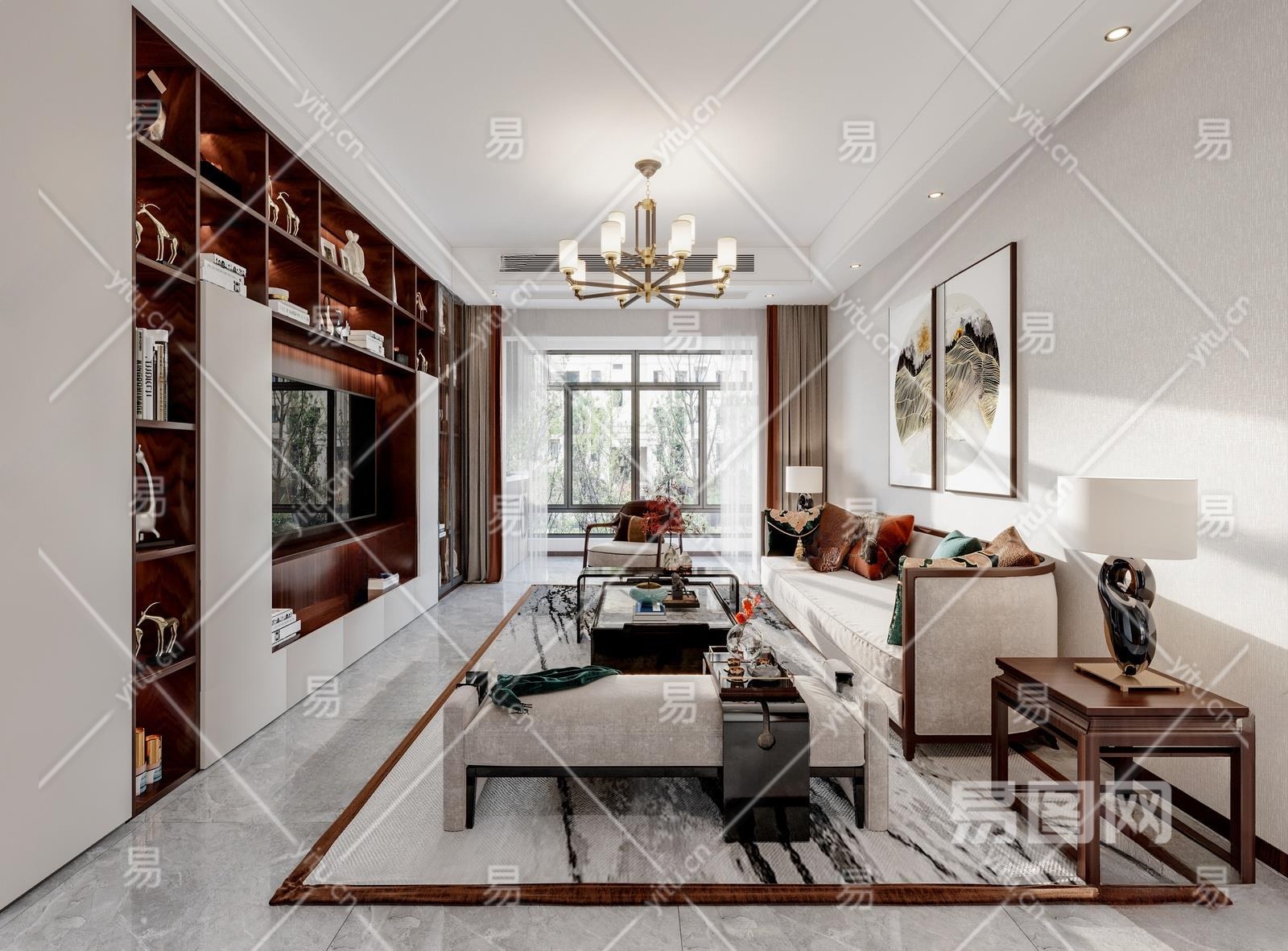 新中式客餐厅3D模型下载