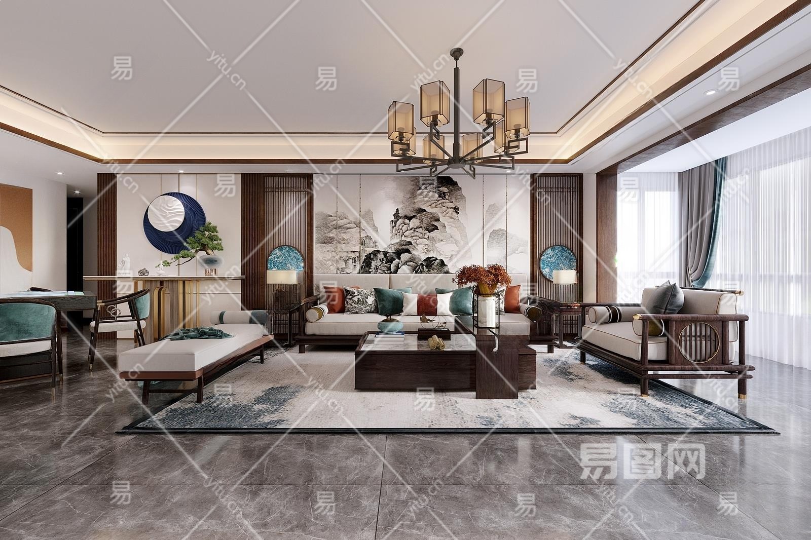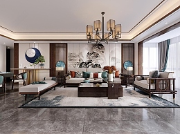 新中式客餐厅3D模型下载