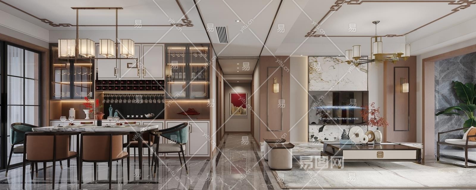 新中式客餐厅3D模型下载