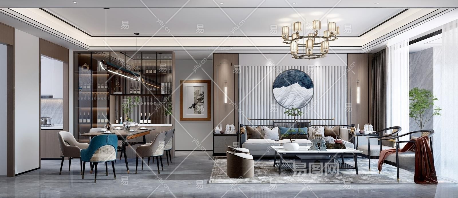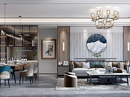 新中式客餐厅3D模型下载