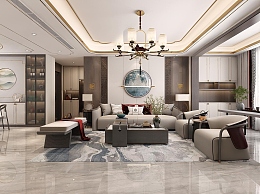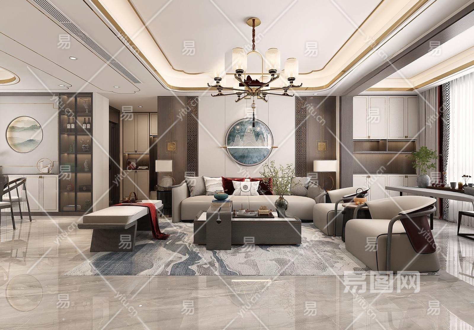 新中式客餐厅3D模型下载