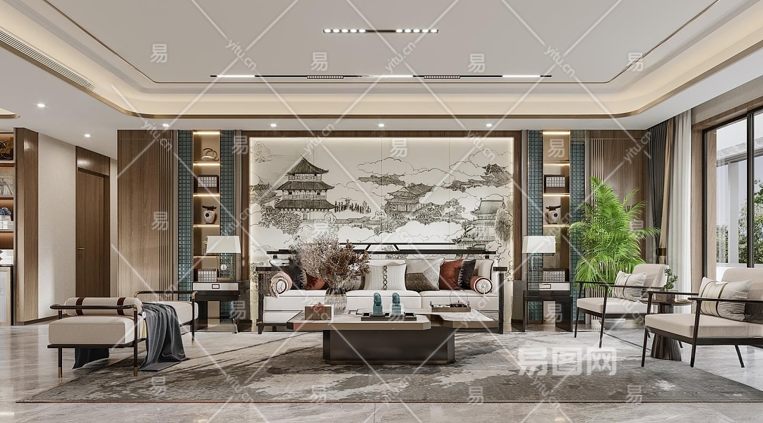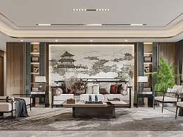 新中式客餐厅3D模型下载