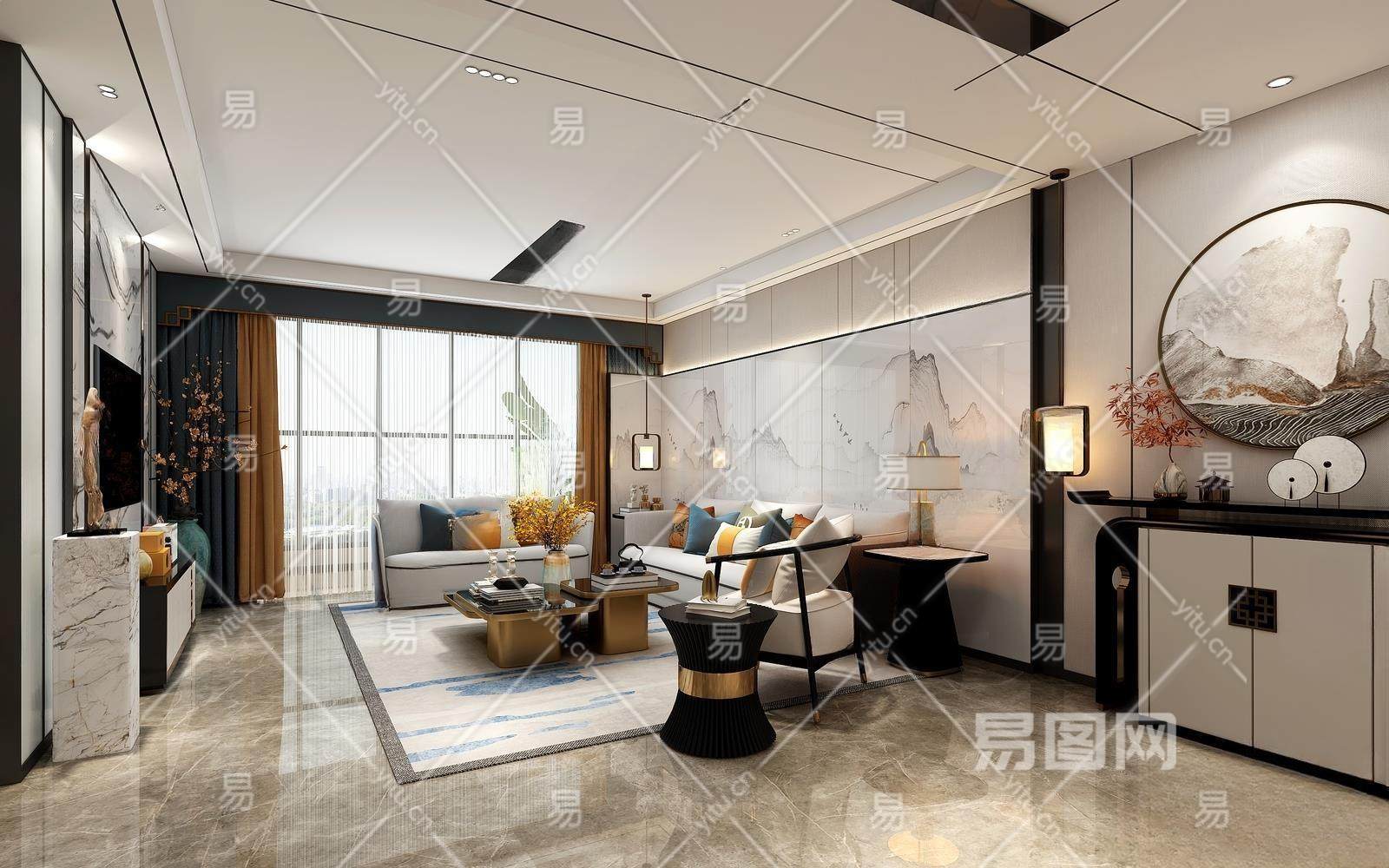 新中式客餐厅3D模型下载