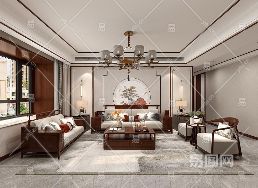新中式客餐厅3D模型下载