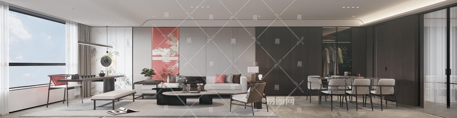 新中式客餐厅3D模型下载