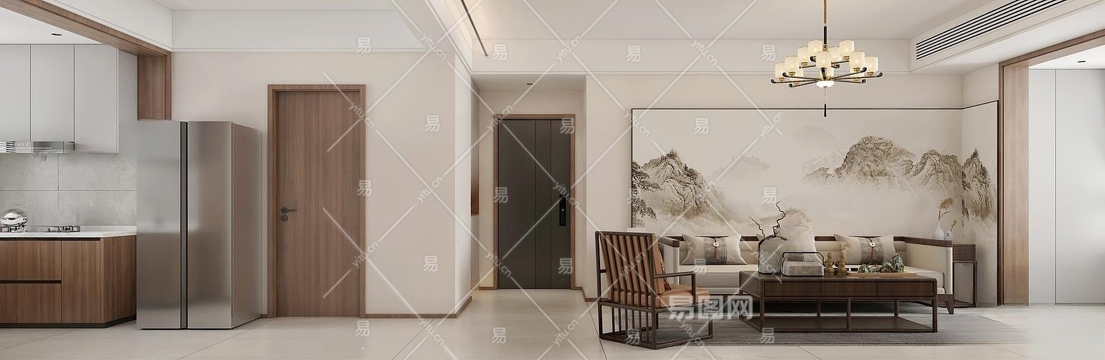新中式客餐厅3D模型下载