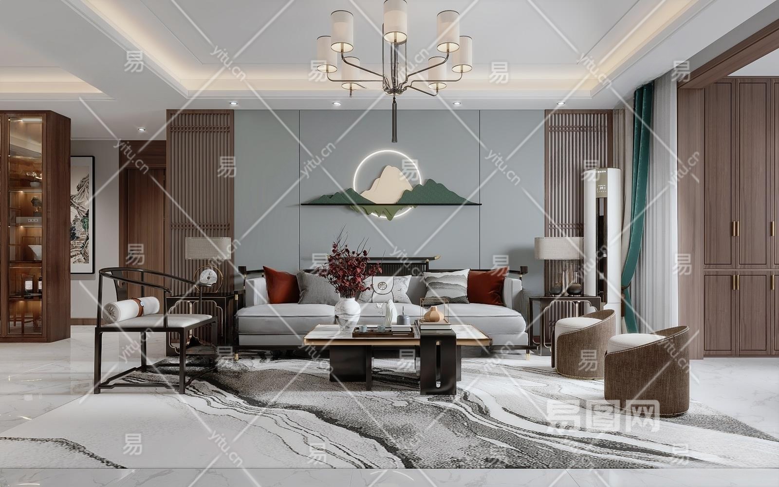 新中式客餐厅3D模型下载