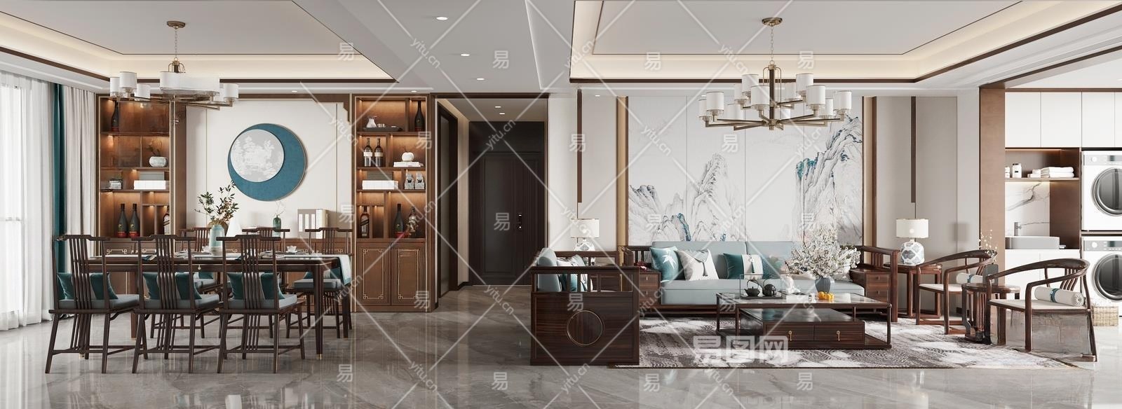 新中式客餐厅3D模型下载