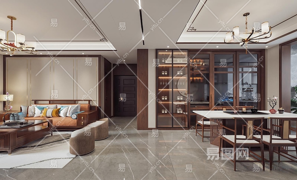 新中式客餐厅3D模型下载