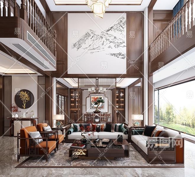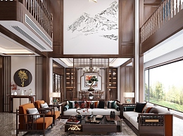 新中式别墅客餐厅3D模型下载