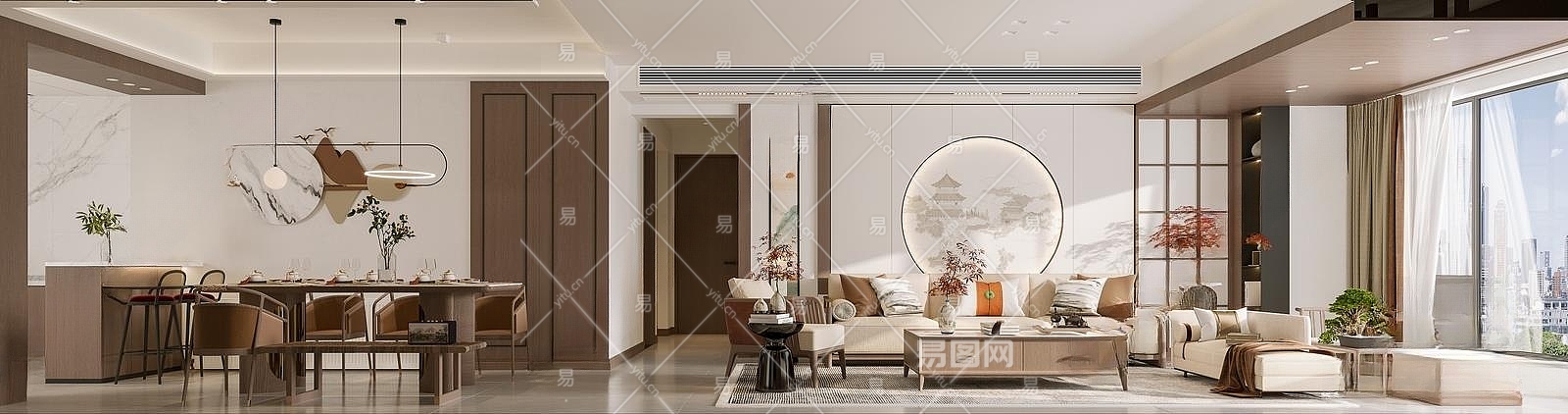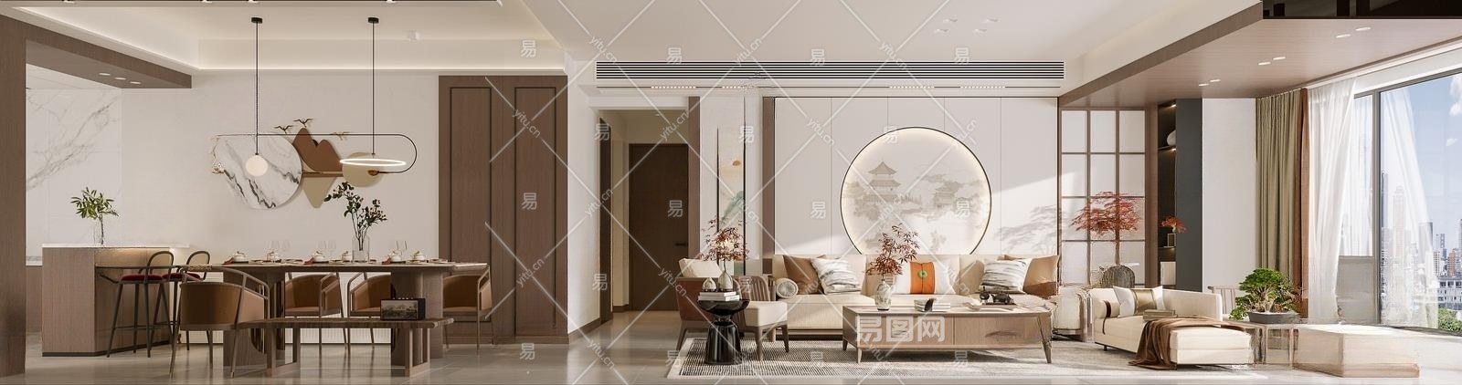 新中式客餐厅3D模型下载