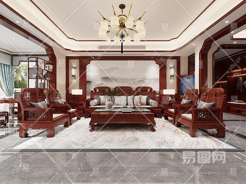 中式客餐厅3D模型下载
