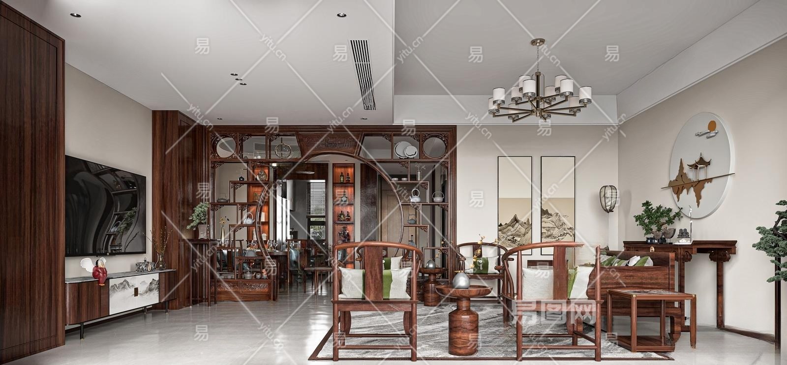中式客餐厅3D模型下载
