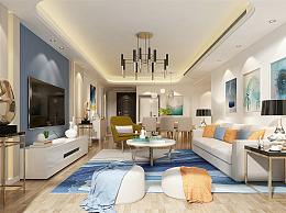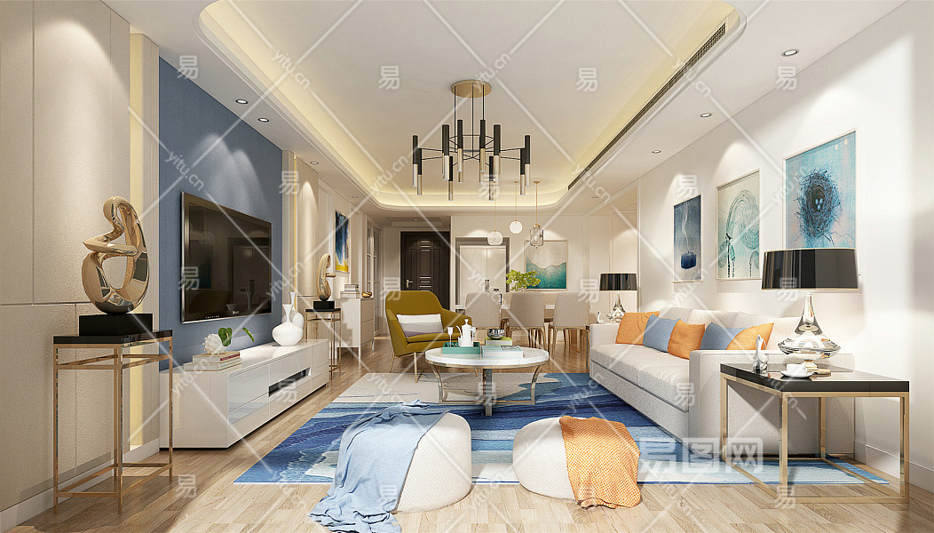 现代客餐厅 吊灯 摆件 沙发 茶几 地毯 吊灯 电视柜 餐桌椅