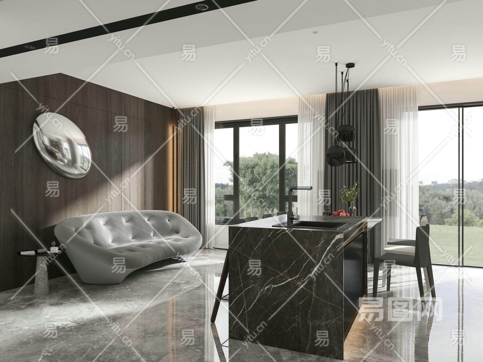 现代客餐厅 沙发茶几 餐桌椅 吊灯 挂画摆件-3