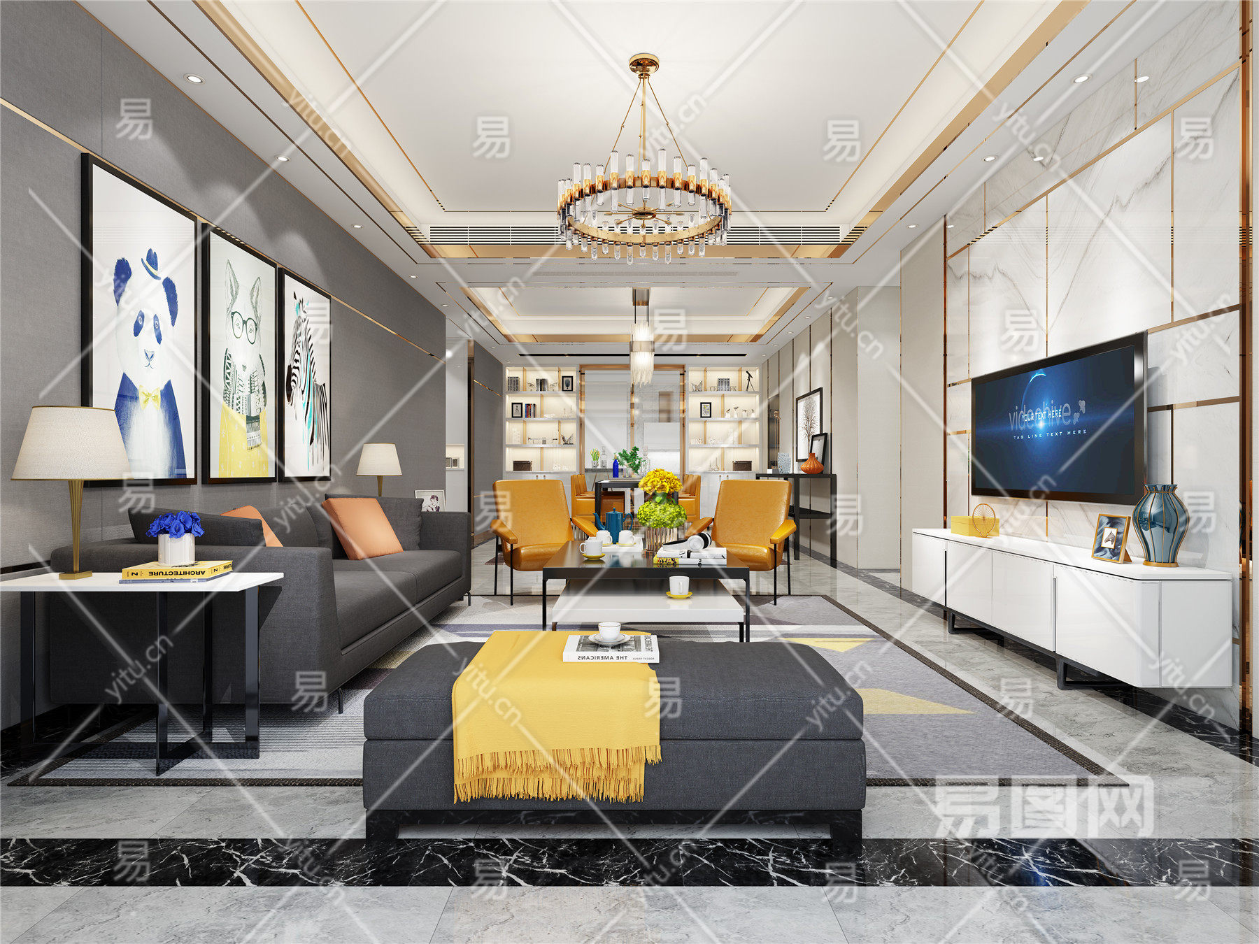 当前的位置:首页 > 3D模型 > 家装空间 > 客餐厅 > 现代客餐厅 沙发茶几 电视柜 电视墙背景墙