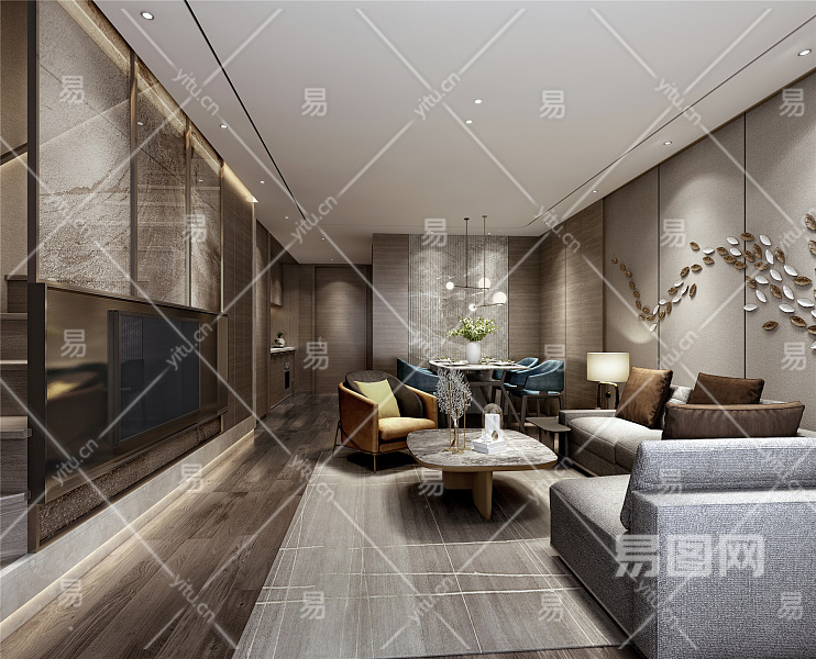 当前的位置:首页 > 3D模型 > 家装空间 > 客餐厅 > 现代轻奢客餐厅 金属墙饰 背景墙 吊灯台灯 沙发茶几 餐桌椅