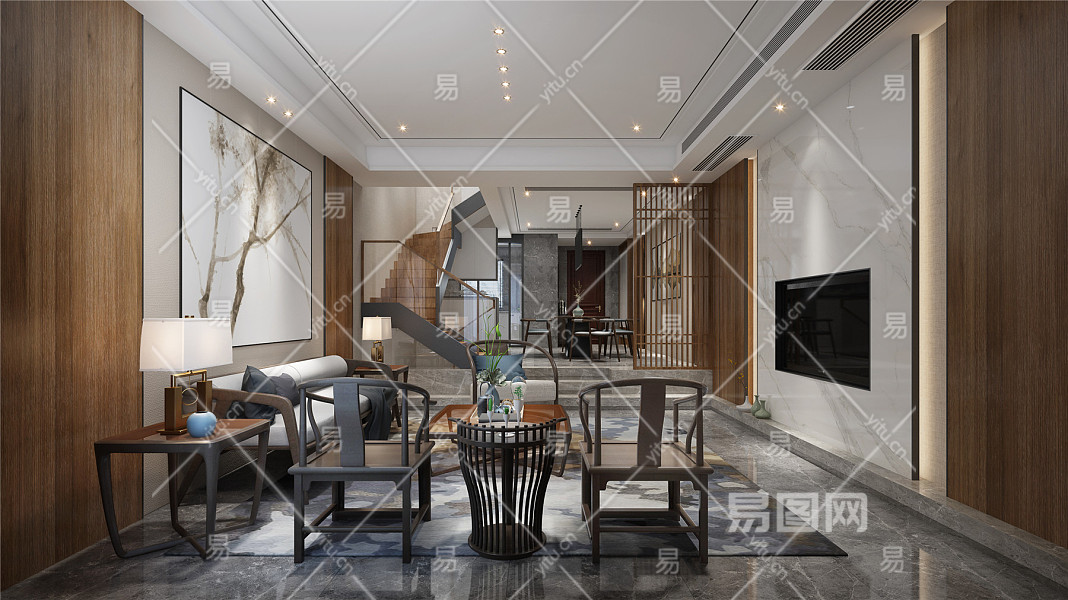 当前的位置:首页 > 3D模型 > 家装空间 > 客餐厅 > 新中式客餐厅 吊灯 台灯 餐桌椅