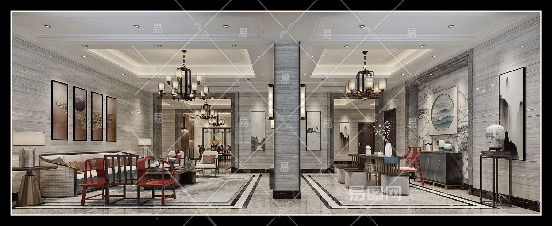 当前的位置:首页 > 3D模型 > 家装空间 > 客餐厅 > 新中式客餐厅 吊灯台灯 餐桌椅 雕塑摆件 沙发 茶几 壁灯 花瓶