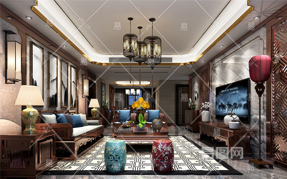 新中式客餐厅 画 吊灯 台灯 壁灯 摆件