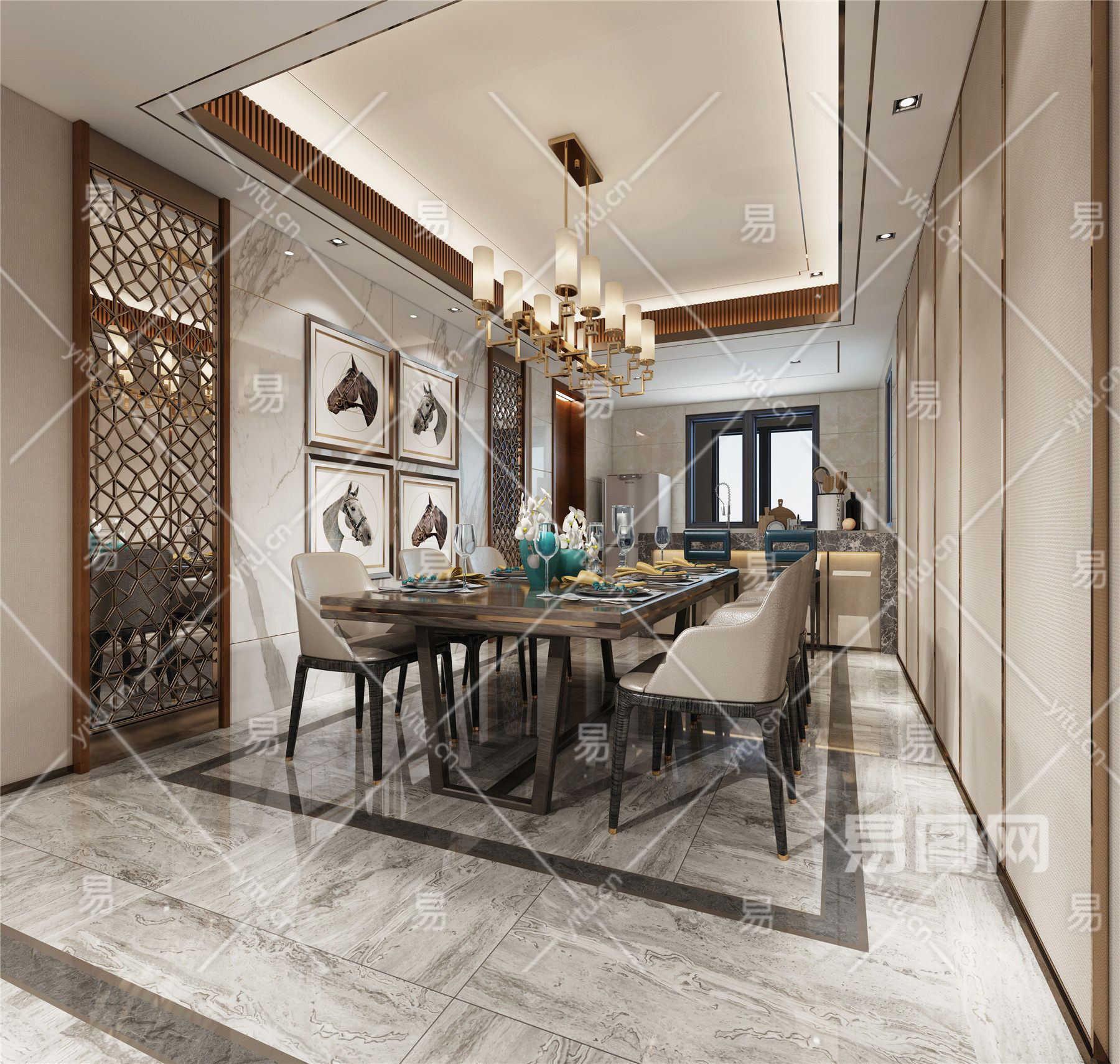 当前的位置:首页 > 3D模型 > 家装空间 > 客餐厅 > 传统中式餐厅 餐桌 餐椅 餐边柜 吊灯 挂画-5