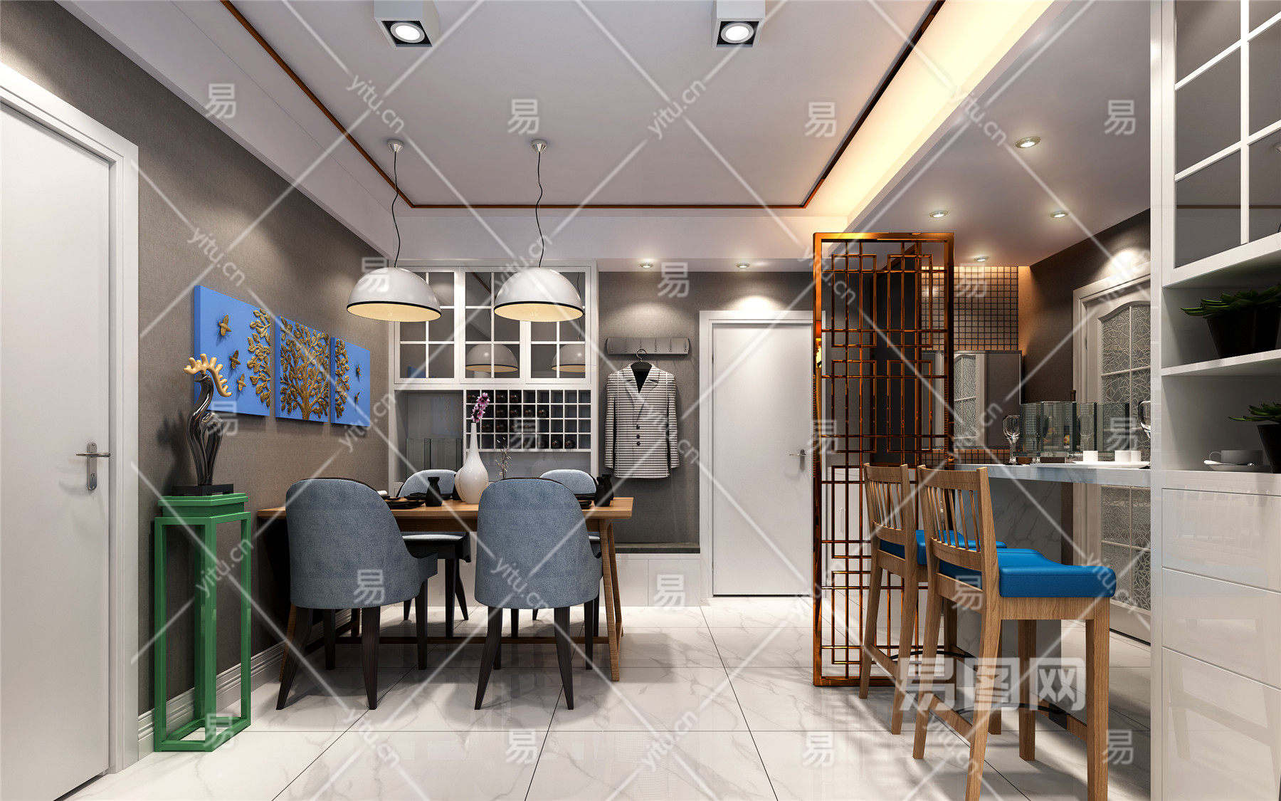 后现代餐厅 现代餐桌椅 鞋柜 装饰画 隔断 吧台 吧椅 装饰品