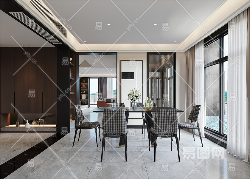 现代餐厅 餐桌椅 桌面摆件 酒柜