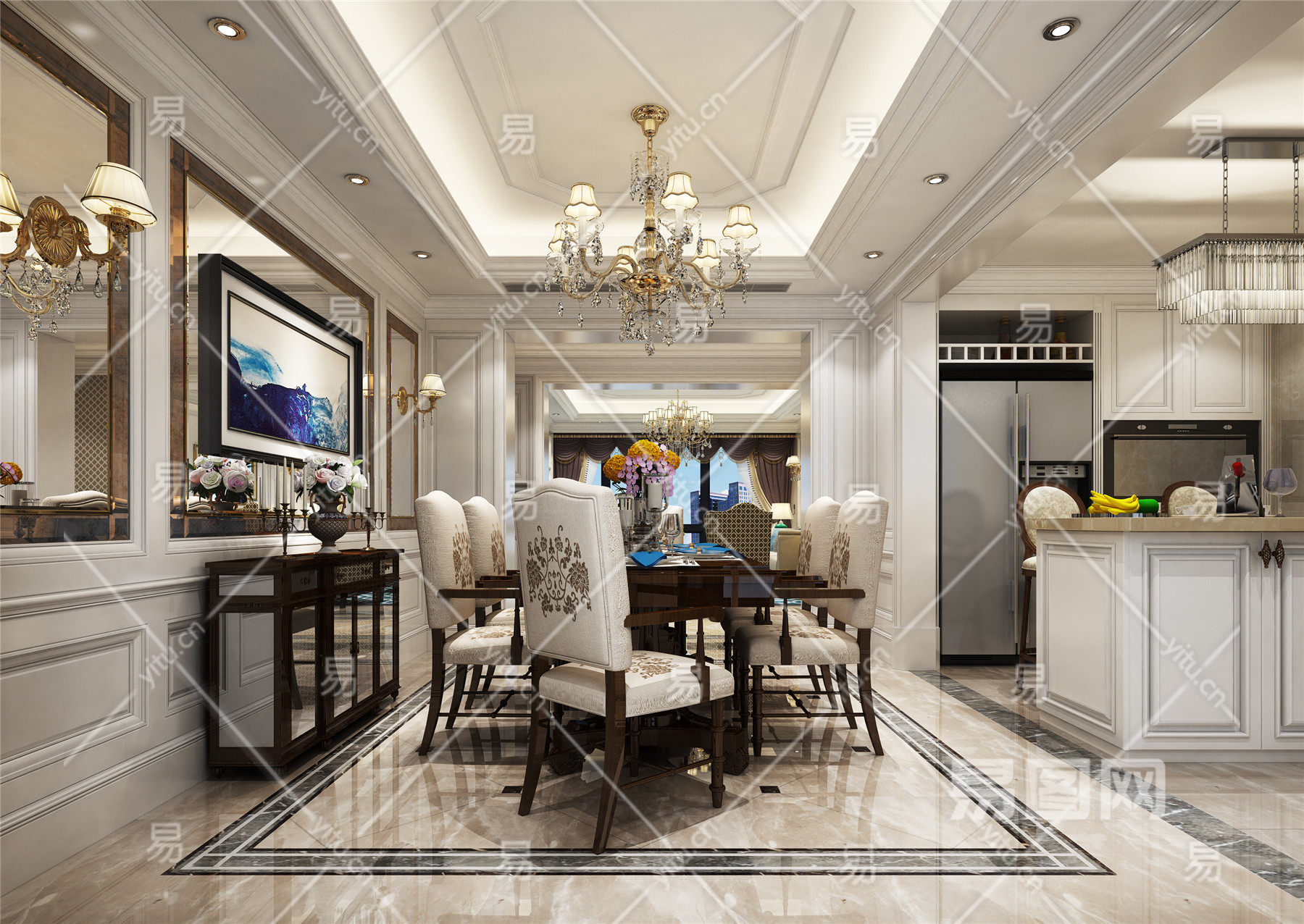 当前的位置:首页 > 3D模型 > 家装空间 > 客餐厅 > 简欧现代欧式餐厅