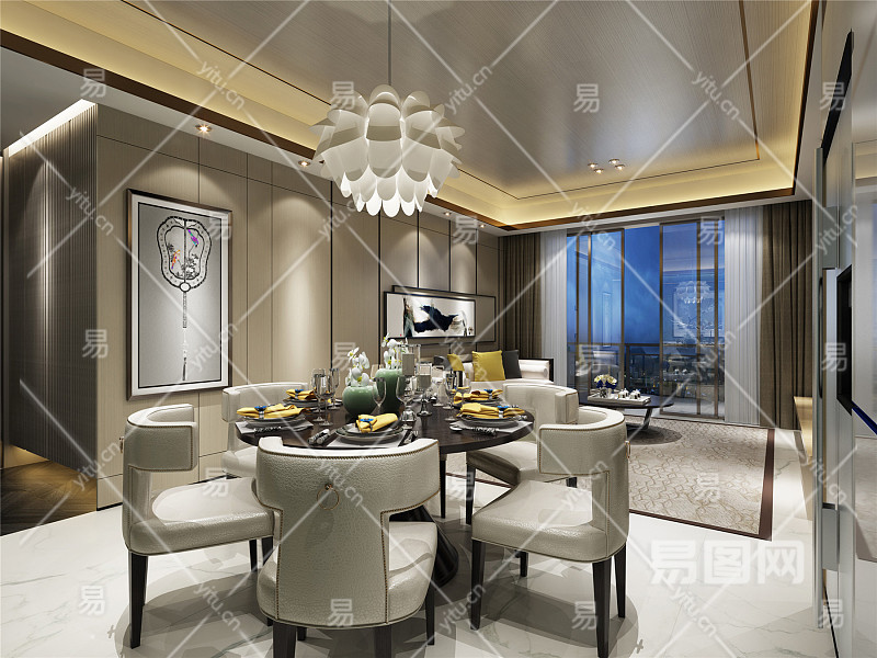 当前的位置:首页 > 3D模型 > 家装空间 > 客餐厅 > 新古典餐厅餐桌椅吊灯 装饰画 背景墙 餐具饰品