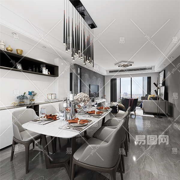 当前的位置:首页 > 3D模型 > 家装空间 > 客餐厅 > 现代客餐厅 吊灯 挂画 沙发 茶几 餐桌椅