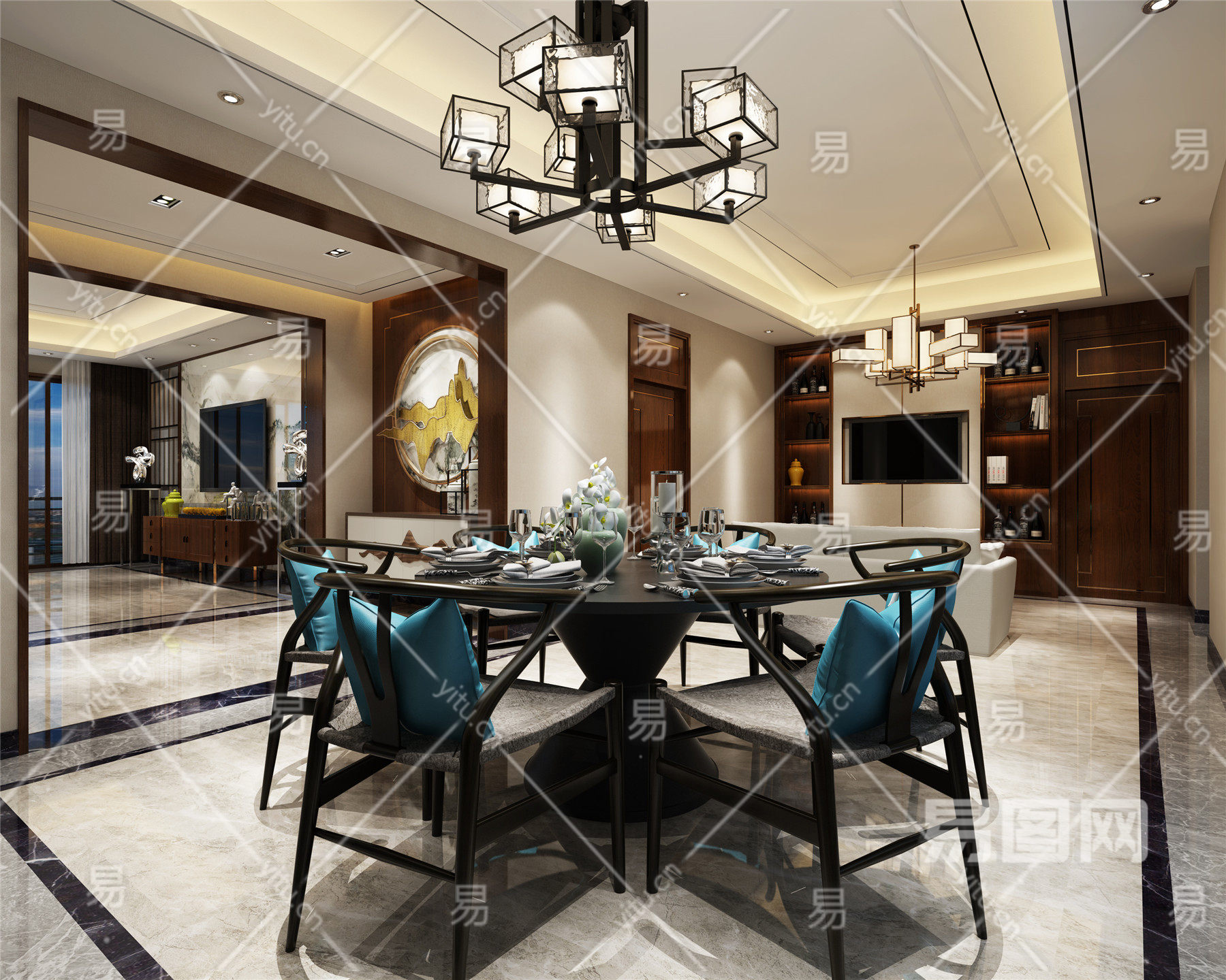 当前的位置:首页 > 3D模型 > 家装空间 > 客餐厅 > 新中式餐厅 实木餐桌椅 中式餐桌 深黑色餐桌 沙发