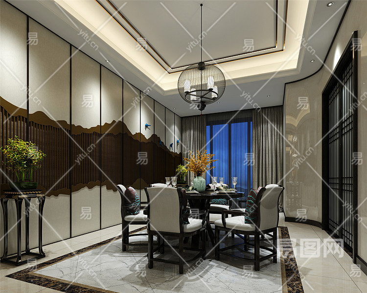 当前的位置:首页 > 3D模型 > 家装空间 > 客餐厅 > 新中式餐厅 新中式背景墙