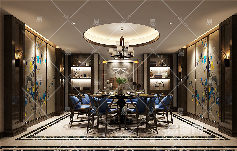 当前的位置:首页 > 3D模型 > 家装空间 > 客餐厅 > 新中式餐厅 酒柜 吊灯 壁灯 画