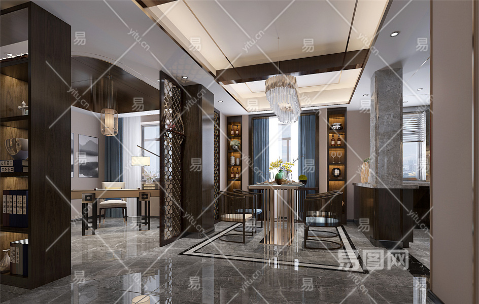 当前的位置:首页 > 3D模型 > 家装空间 > 客餐厅 > 新中式餐厅-1