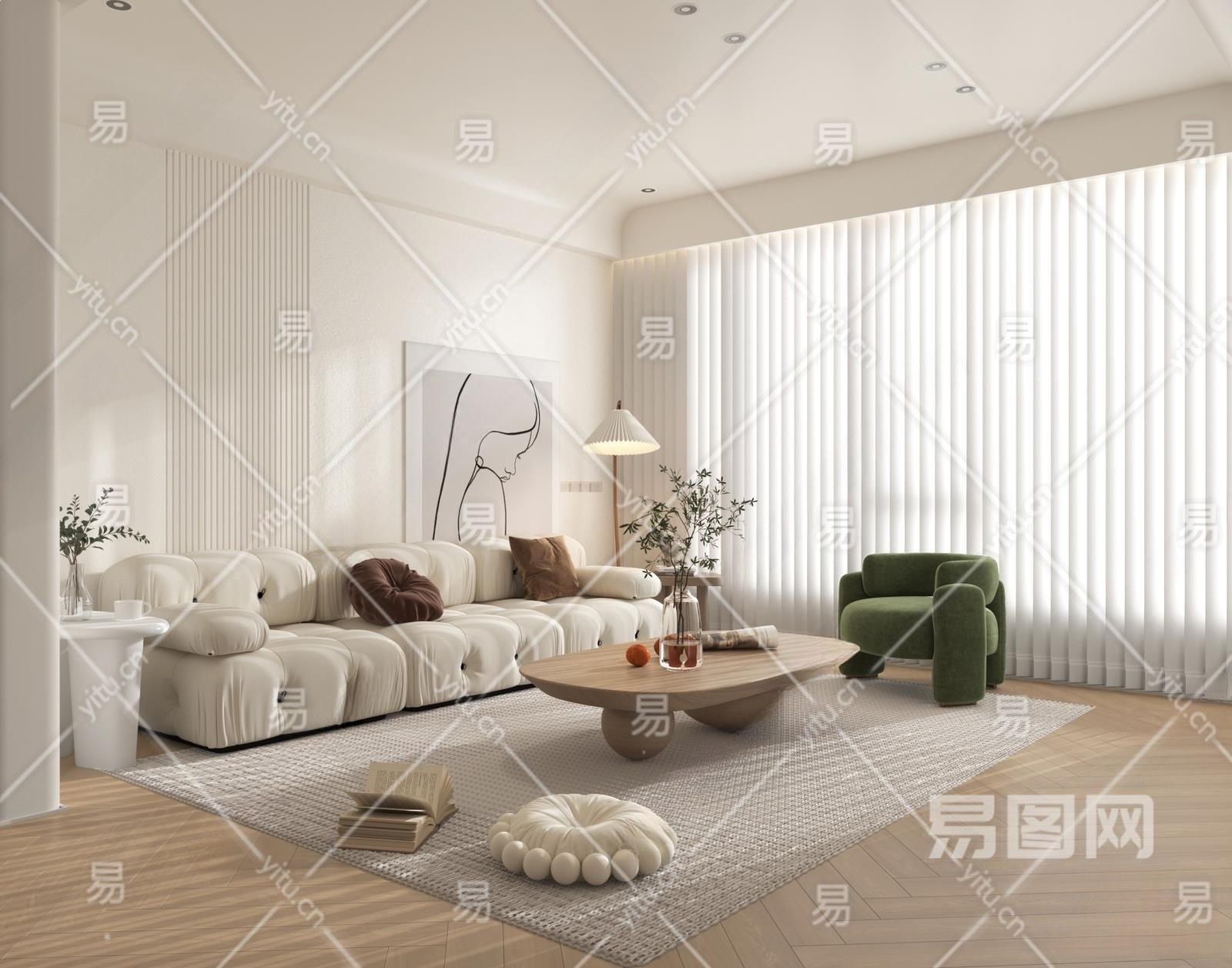 现代客厅3D模型下载